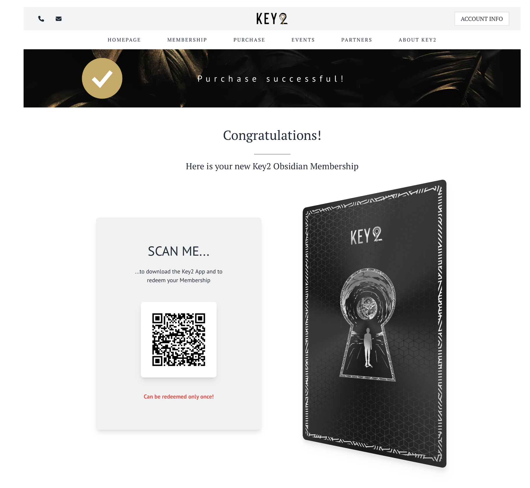 Pair to the KEY2 mobile wallet by QR for memberships, history and access.